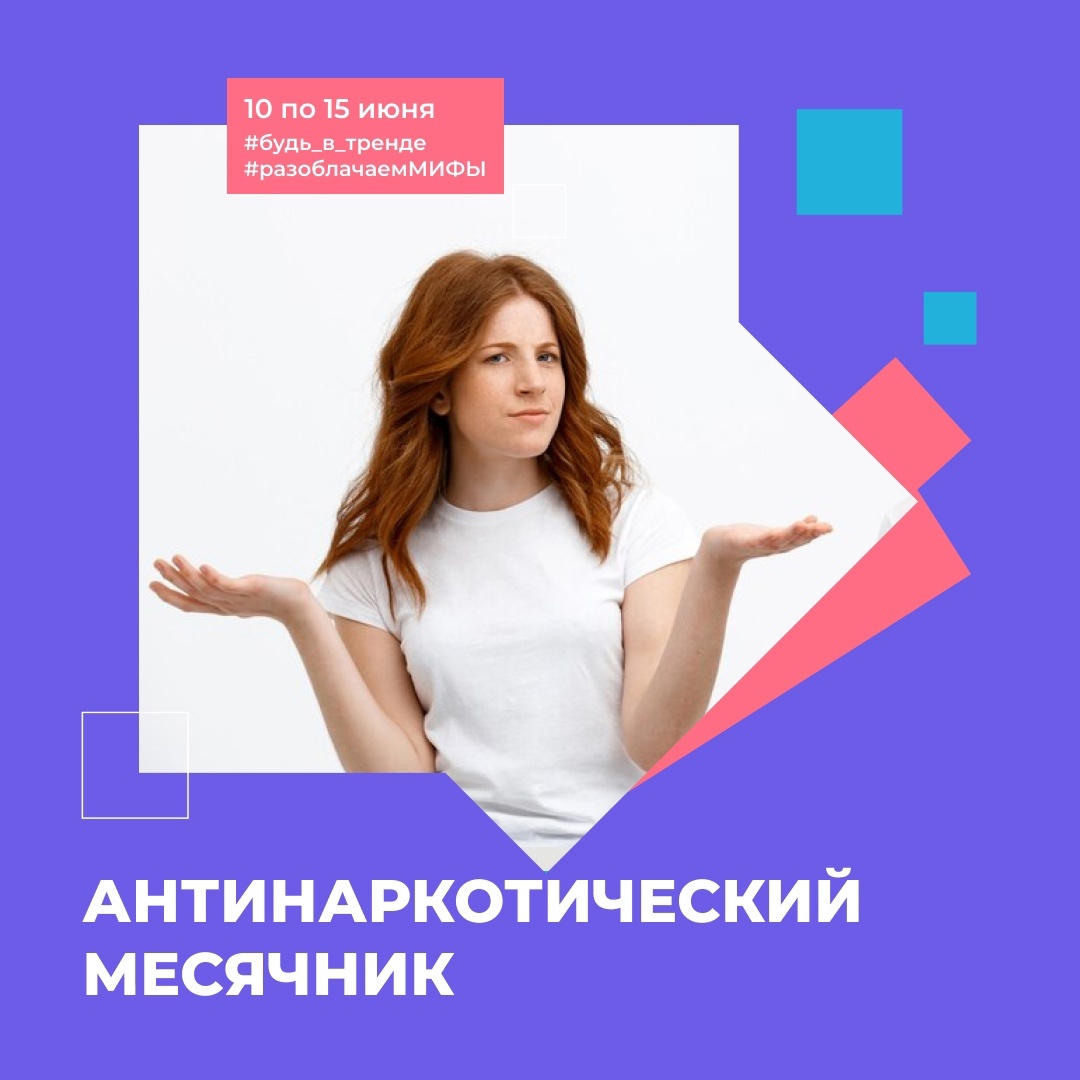 С 10 по 15 июня проходит информационная кампанию «8 мифов о наркотиках». Подробнее можно ознакомиться о них тут https://clck.ru/3MeQnq