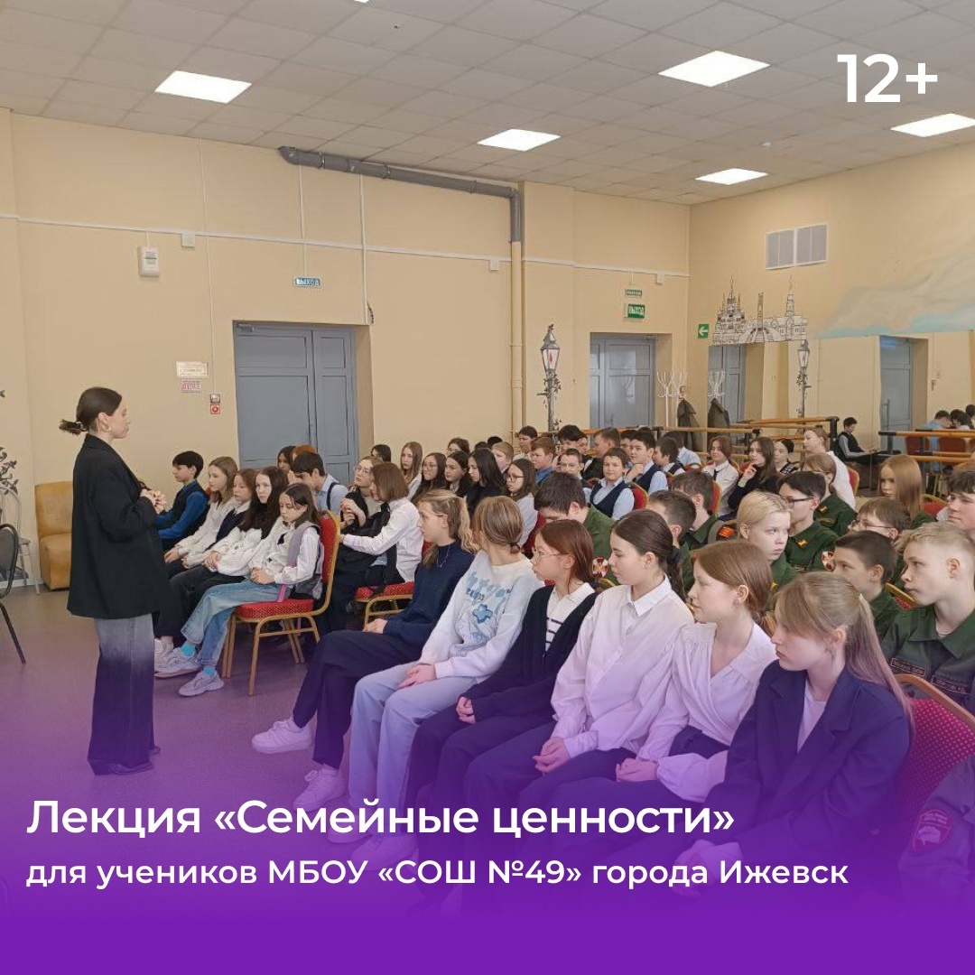 18 марта сотрудники Центра профилактики провели увлекательную и познавательную лекцию для учащихся 7-8 классов МБОУ «СОШ №49». Тема мероприятия — «Семейные ценности».
