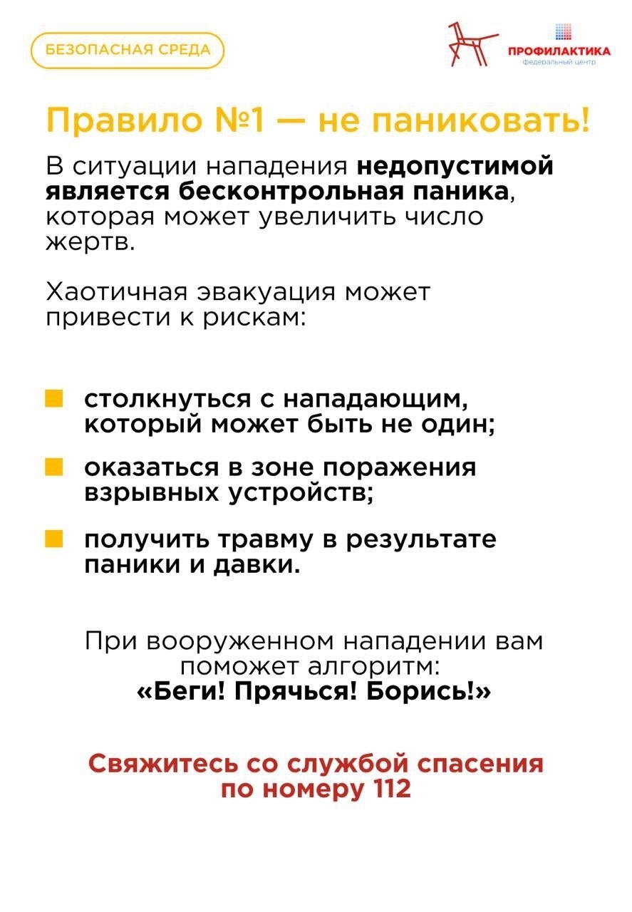 АНО «ЦИСМ» совместно с Федеральным центром «Профилактика» «Профилактика» подготовили полезный методический материал — алгоритмы действий при вооружённом нападении.