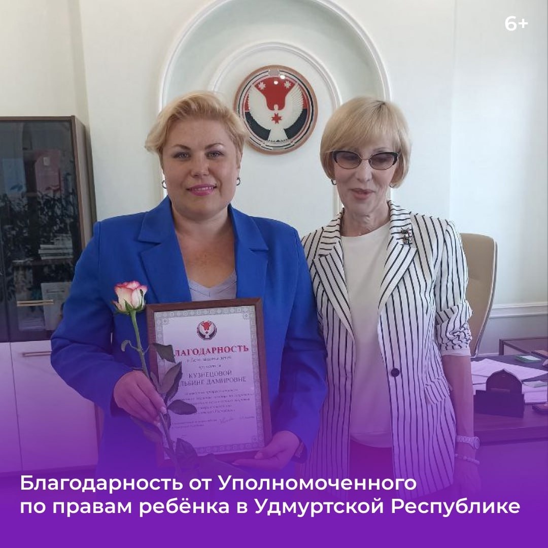 Психолог Центра профилактики, Альбина Дамировна Кузнецова , получила заслуженную благодарность за высокий профессионализм и качественное оказание помощи несовершеннолетним Удмуртии.