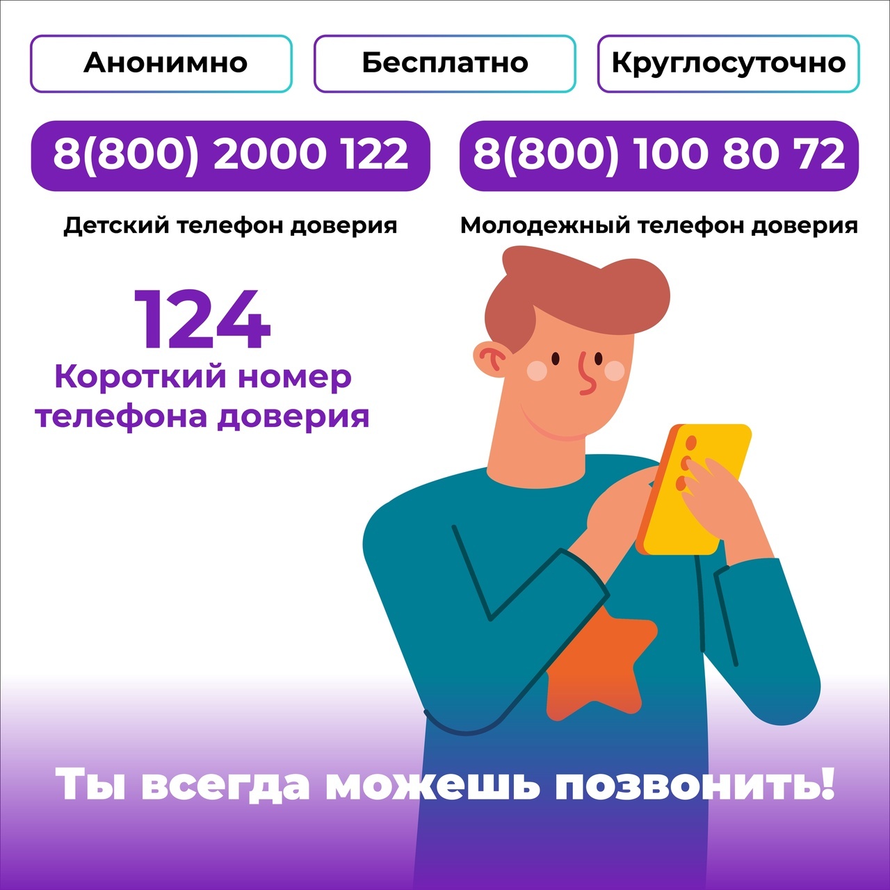 Помните, сотрудники телефонов доверия работают круглосуточно и оказывают услуги анонимно и бесплатно.