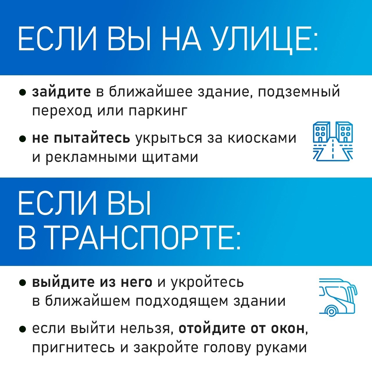 - спрячьтесь в ближайшем здании, подземном переходе или паркинге, избегайте окон